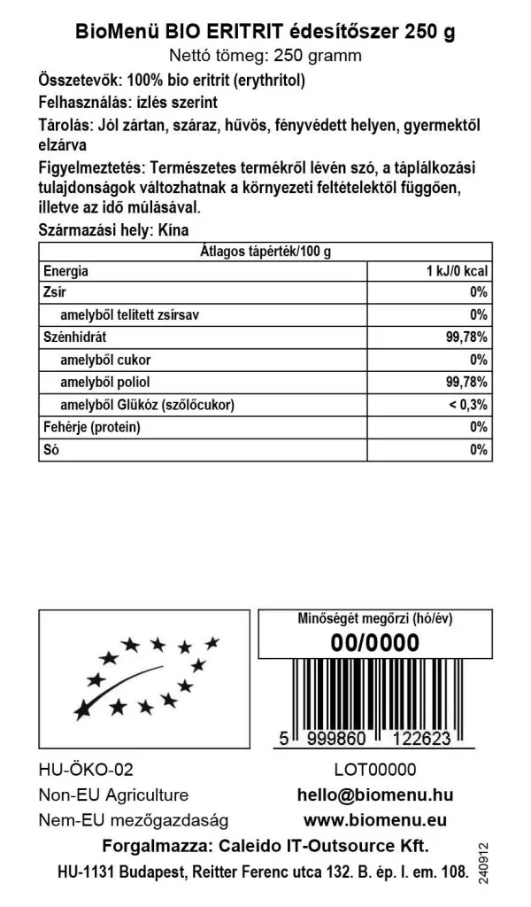 BIOMENÜ BIO Eritrit Édesítőszer