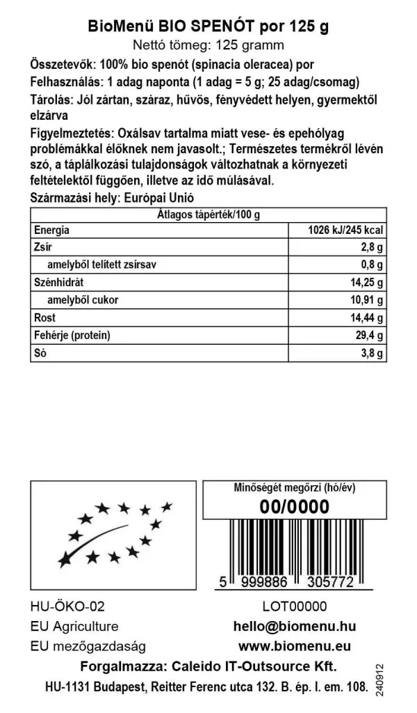 A bio spenótport smoothie-khoz, gyümölcslevekhez, salátaöntetekhez és levesekhez is felhasználhatjuk, hogy extra tápanyagot és élénk zöld színt adjunk az ételeknek. Alkalmas a liszt részleges kiváltására kenyérfélékben és süteményekben is. Alacsony kalóriatartalmú, gyakorlatilag zsírmentes, és kiváló vasforrás.
