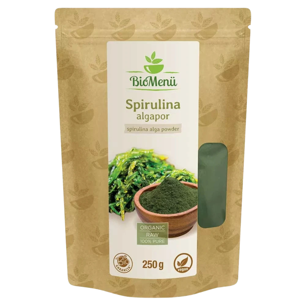A spirulina alga gazdag vitamin-, fehérje- és aminosavforrás. Ez a modern szuperélelmiszer egy természetes, spirál alakú kék-zöld alga. A spirulina tenyésztőtavakból betakarított mikroszkopikus növény, amelyet a Dél-kínai-tenger egyik szigetén termesztenek. A betakarítást követően természetes porlasztásos eljárással szárítják, hogy spirulina por készüljön belőle. Ez a kíméletes folyamat segít megőrizni a tápanyagokat. 10 kg friss algából körülbelül 1 kg por állítható elő.