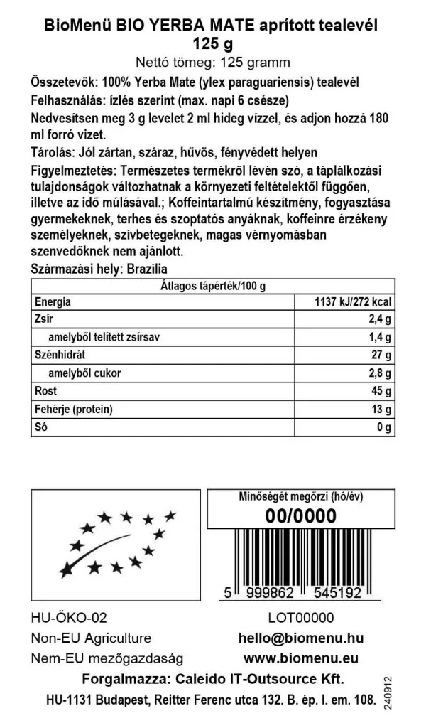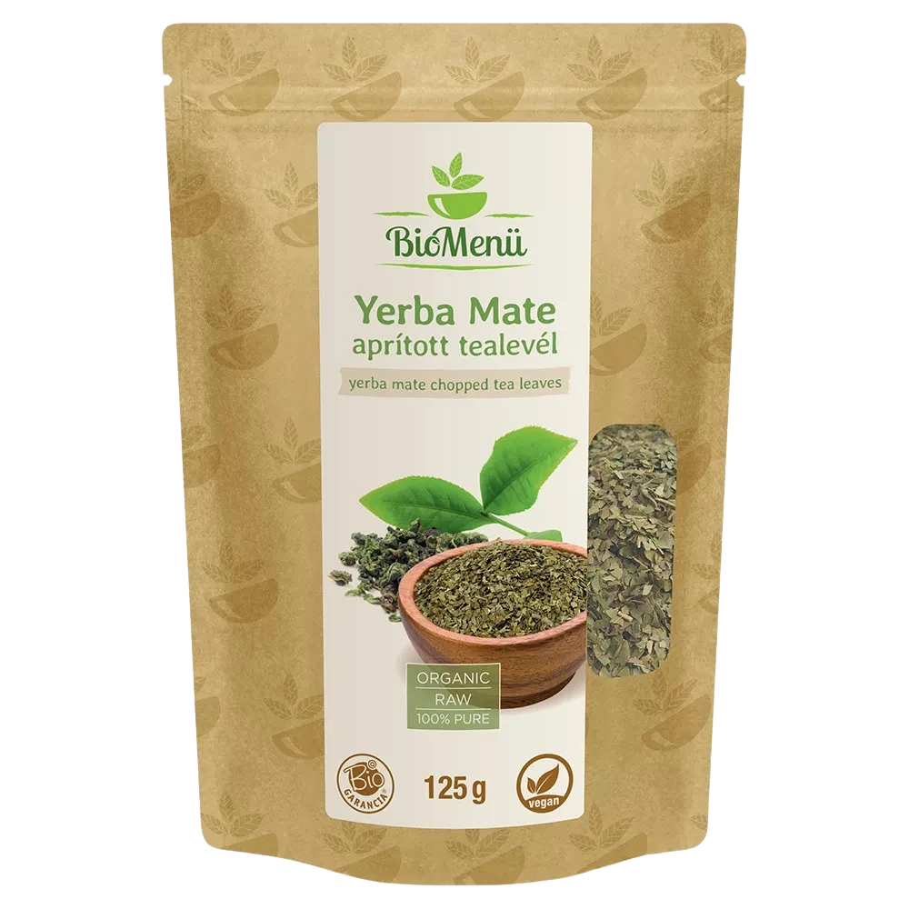A mate, közismert nevén yerba mate (Ilex paraguariensis), Dél-Amerikában őshonos gyógynövény, amelyből a kontinens nemzeti italát készítik. Forrázatként fogyasztják: a növény szárított leveleit forró vízbe áztatják, így teaszerű italt kapnak, amelyet melegen vagy hidegen is élvezhetünk. A Brazíliából származó bio yerba mate 4 mm-esre vágott tealevelekből áll. Ez a forma az őrölt porral szemben előnyösebb, mivel könnyedebb, kevésbé keserű ízvilágot biztosít.