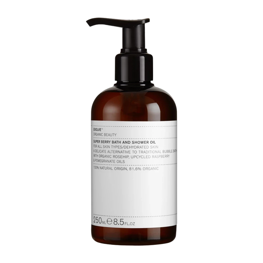 Az EVOLVE Beauty Super Berry egy luxus és könnyed fürdő- és tusolóolaj, amely gyengéden tisztítja, táplálja és hidratálja a bőrt, miközben nincs szükség zuhanyozás utáni további hidratálásra.