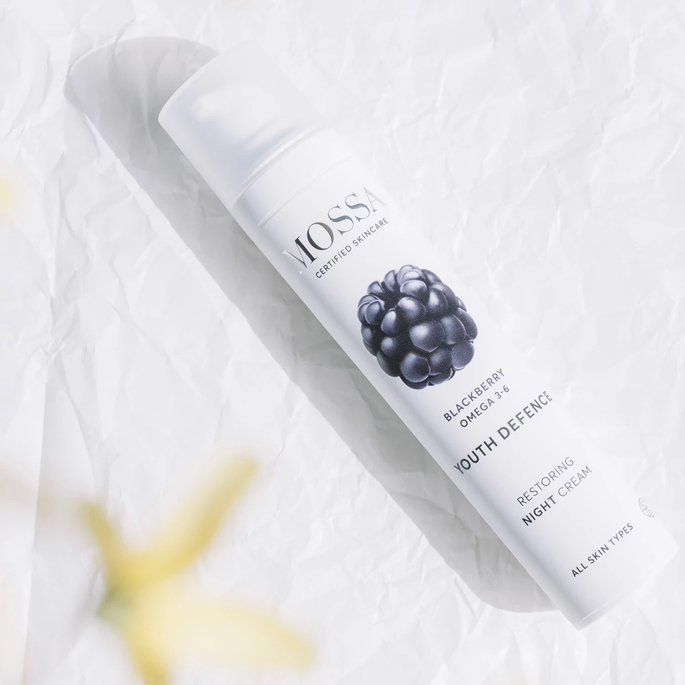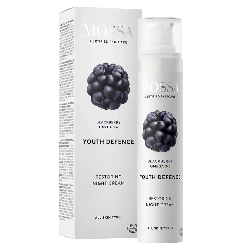 A Mossa Youth Defence Restoring éjszakai krém gazdag, bársonyos textúrájú formula, amely alvás közben táplálja és puhítja a bőrt. Éjszaka a bőr természetes regeneráló üzemmódban működik, ilyenkor a legfogékonyabb a tápanyagokra — ezért az éjszakai krémnek táplálóbbnak kell lennie, mint a nappalinak, amely elsősorban védelmet biztosít.