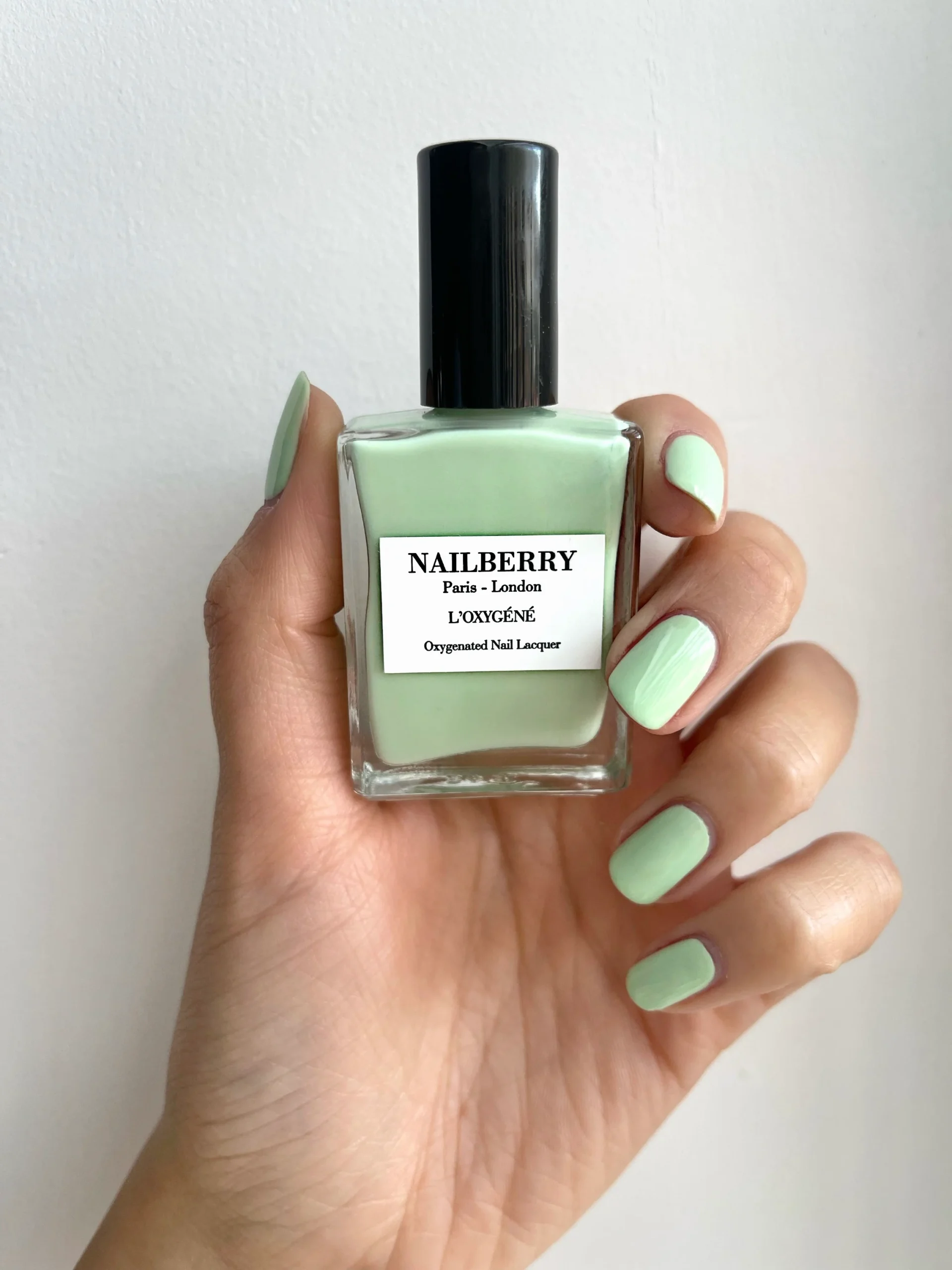 A Nailberry Oxygenated körömlakkjai légáteresztő, oxigén- és vízáteresztő formulával készülnek, így kíméletesebbek a körmökhöz, miközben hosszan tartó, telt színfedést biztosítanak. A L’Oxygéné technológia segít megőrizni a körmök természetes egészségét, csökkenti a kiszáradást és a töredezést. Vegán, 12-free összetételüknek köszönhetően ideális választás mindennapi használatra – könnyű felvitel, gyors száradás és ragyogó, tartós fény egyetlen palackban.