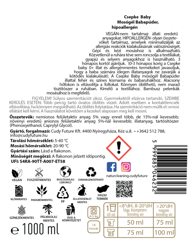 NATURCLEANING Csepke Baby Hipoallergén Mosógél Babapúder