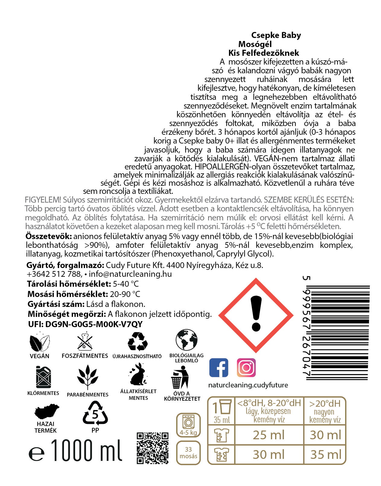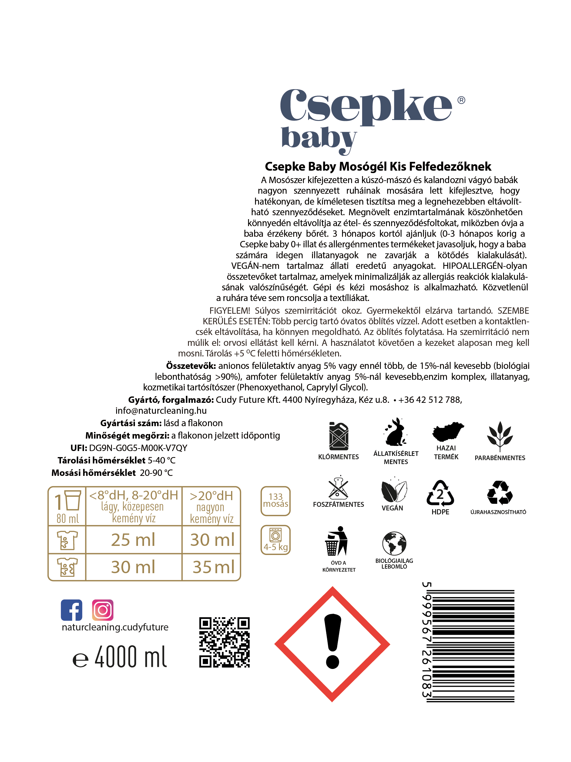 A mosószer kifejezetten a kúszó-mászó és kalandozni vágyó babák erősen szennyezett ruháinak tisztítására készült.