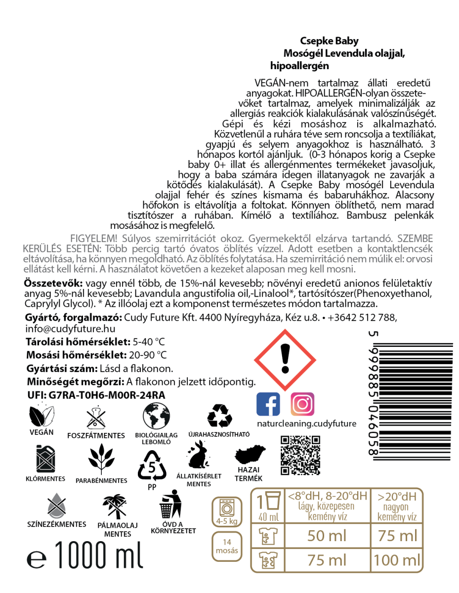 3+ ajánlás: ha 3 hónapos kortól szeretne illatos mosószert használni, választhatja a 3+ jelzésű, természetes illóolajokkal illatosított, allergénmentes Csepke Baby termékeket.