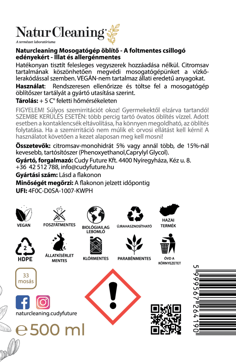 A Naturcleaning Sensitive mosogatógép-öblítő használatával az edények csík- és foltmentesek, ragyogóan tiszták lesznek, és gyorsan száradhatnak. Felesleges vegyszerek nélkül biztosít hatékony tisztítóhatást, így tökéletes választás az érzékeny bőrűek és allergiában szenvedők számára.