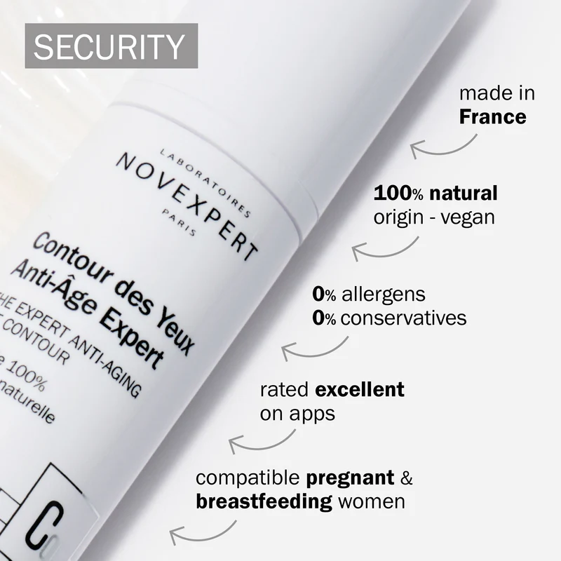 A 3 az 1-ben szemkörnyékápoló: ránctalanító, duzzanatcsökkentő és sötétkarika-halványító – tökéletesen tükrözi a Novexpert értékeit.